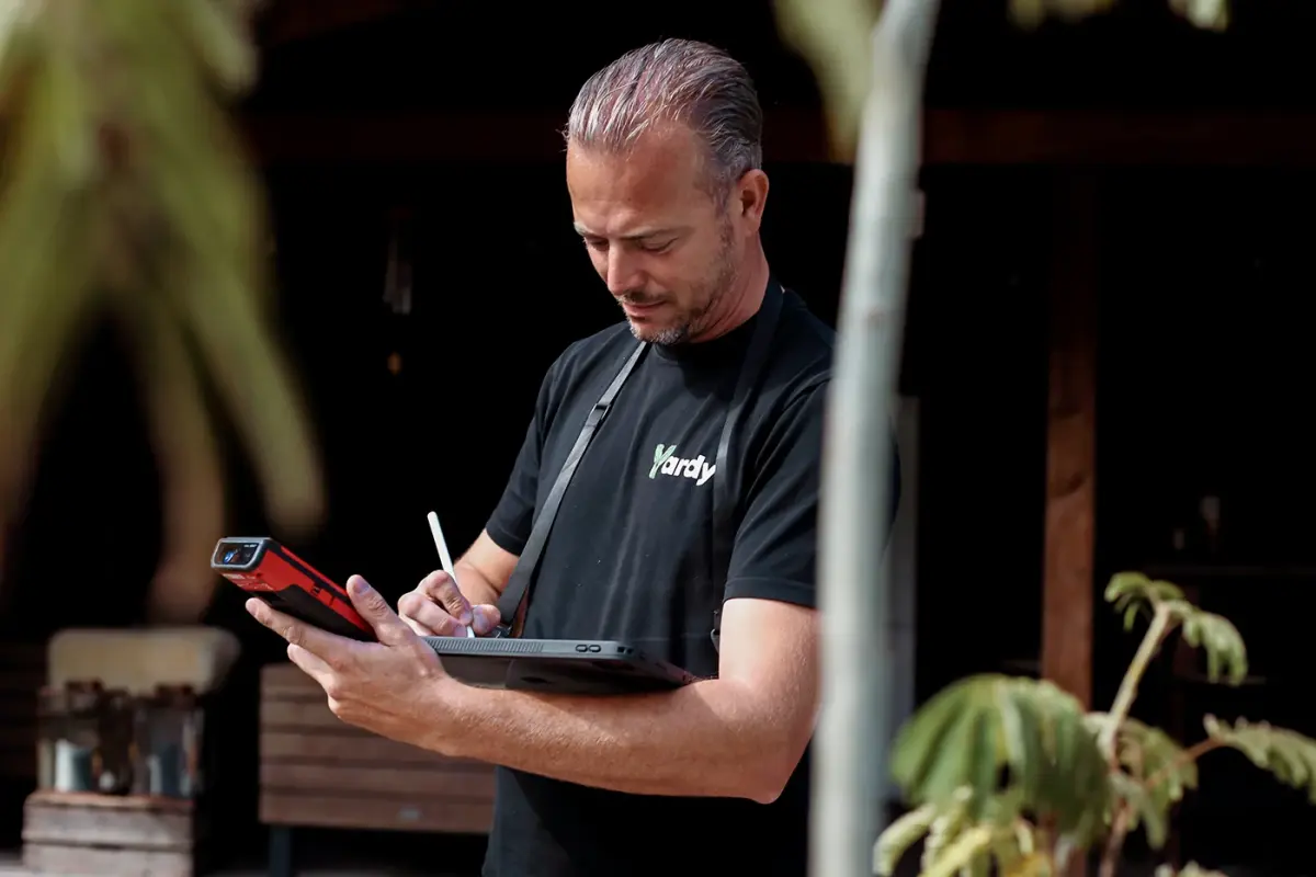 De buitendienst van Yardy komt naar jouw tuin en zal, afhankelijk van de grootte, circa één uur bezig zijn om de lengtes, breedtes, hoogtes, hoekjes en andere bijzonderheden op te meten. Dit doen we altijd vóór de ontwerpsessie, het inmeetrapport dient dan direct als plattegrond voor onze ontwerper. Mocht het een nieuwbouwwoning betreffen en is de tuin nog niet 100% nauwkeurig op te meten slaan we deze stap over. Dan beginnen we met de afmetingen die vanuit de bouw zijn afgegeven.