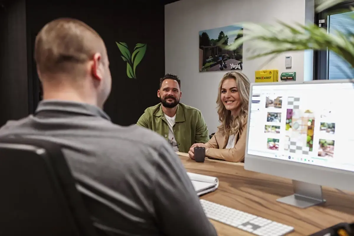 Tijdens onze ontwerpsessie maken wij live, samen met jou, een 2D ontwerp. Jij ziet direct hoe onze ontwerper jouw wensen en eisen vertaald naar een tuinontwerp en je kunt er plekke veranderingen bespreken en doorvoeren.